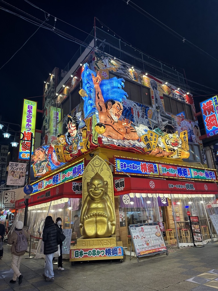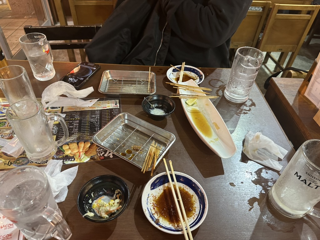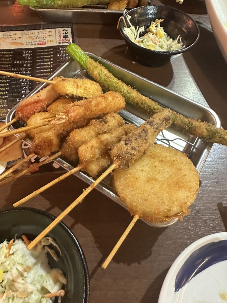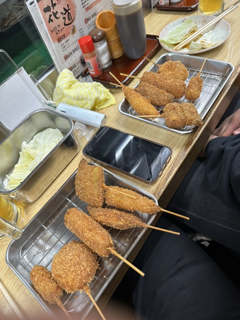 오사카 스텐카쿠 타워 앞에 있는 저렴한 꼬치집에 왔다. 인상적인 맛은 아니었던걸로 기억한다. (술이 별로였던가,,)