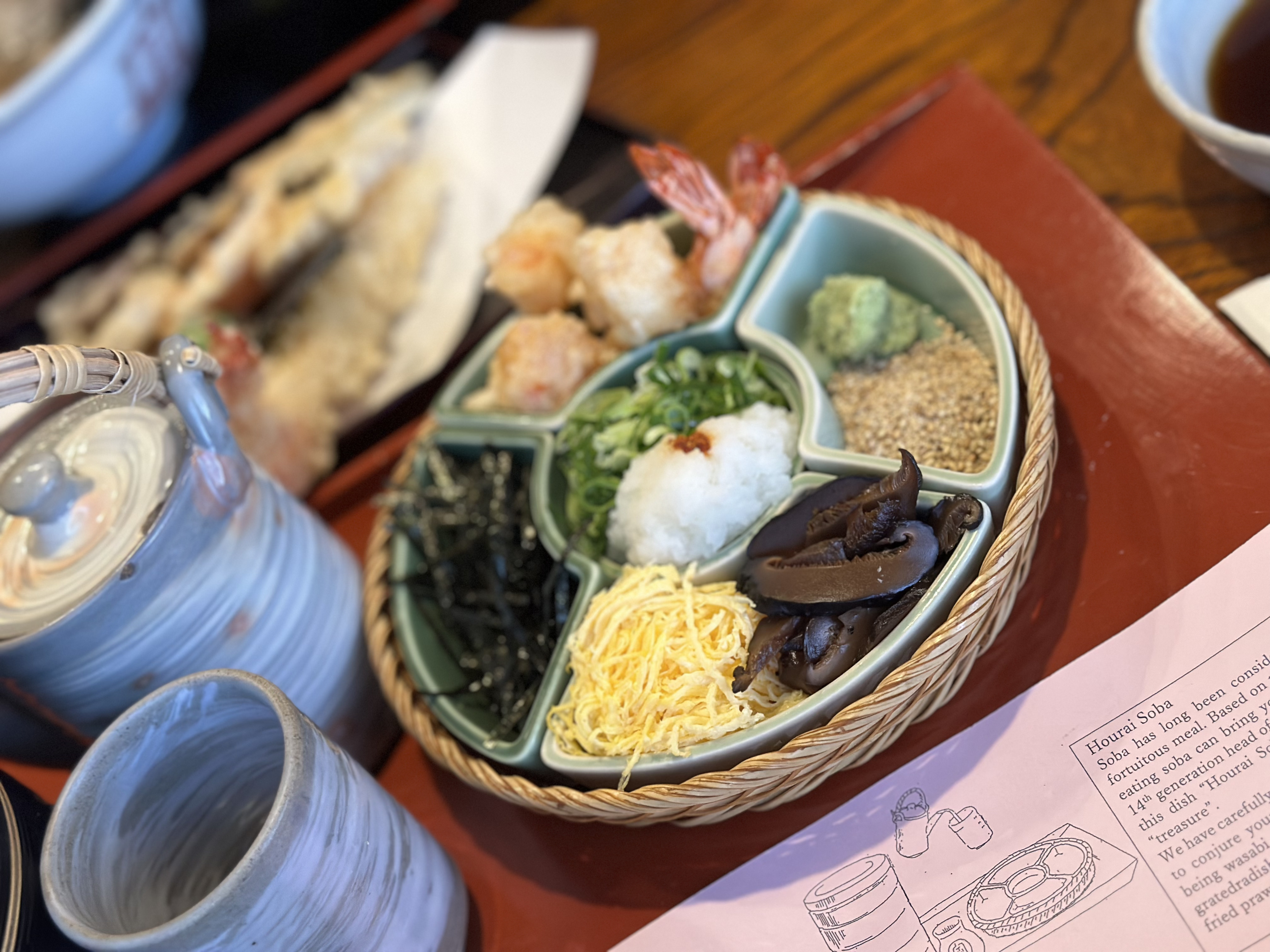 약 550년의 역사가 있는 교토의 모밀집 '혼케 오와리야'이다. 웨이팅이 분명 많이 있다고 했는데 그냥 들어가서 먹었다.