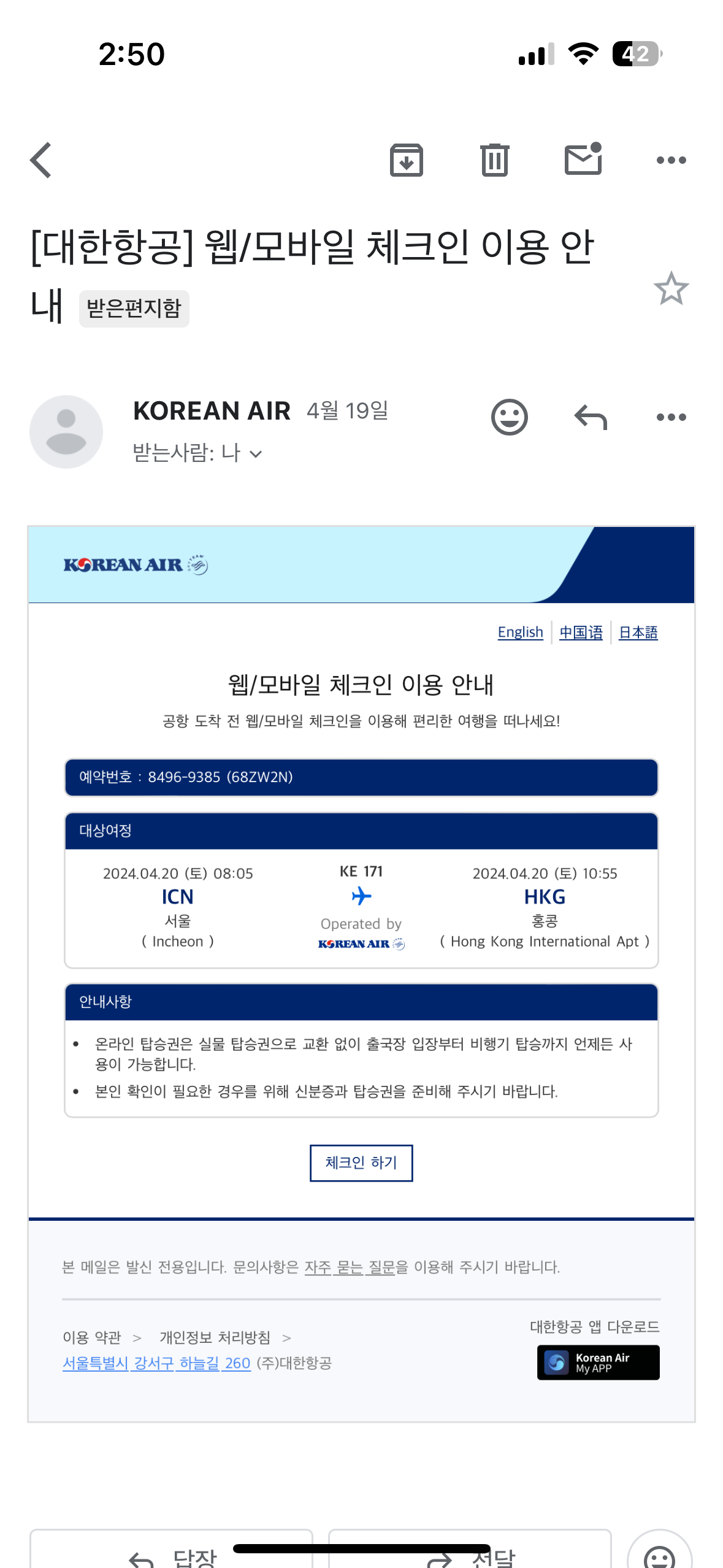 2024년 4월 18일 목요일, 퇴근 후 친구한테 홍콩가자는 연락이 왔다.