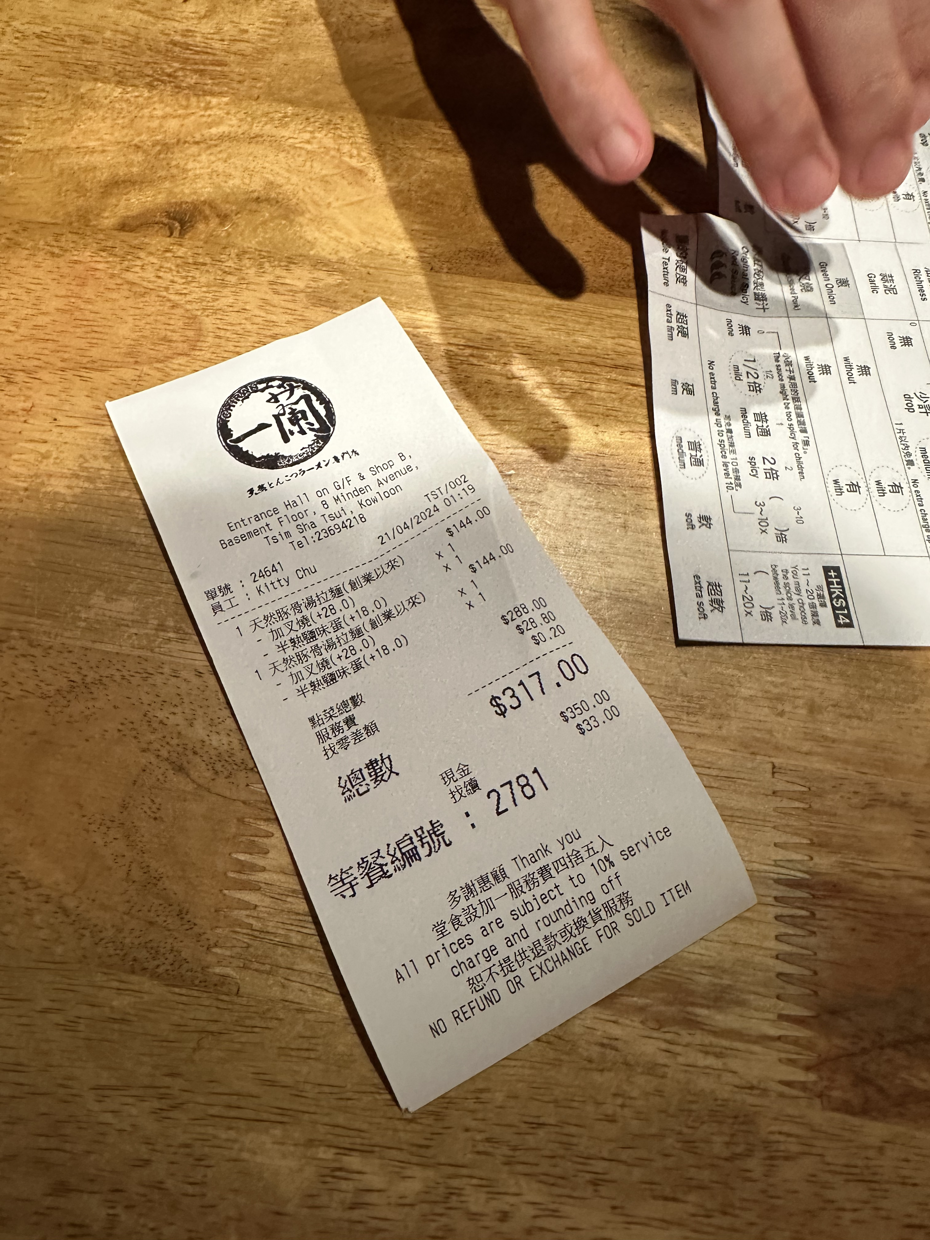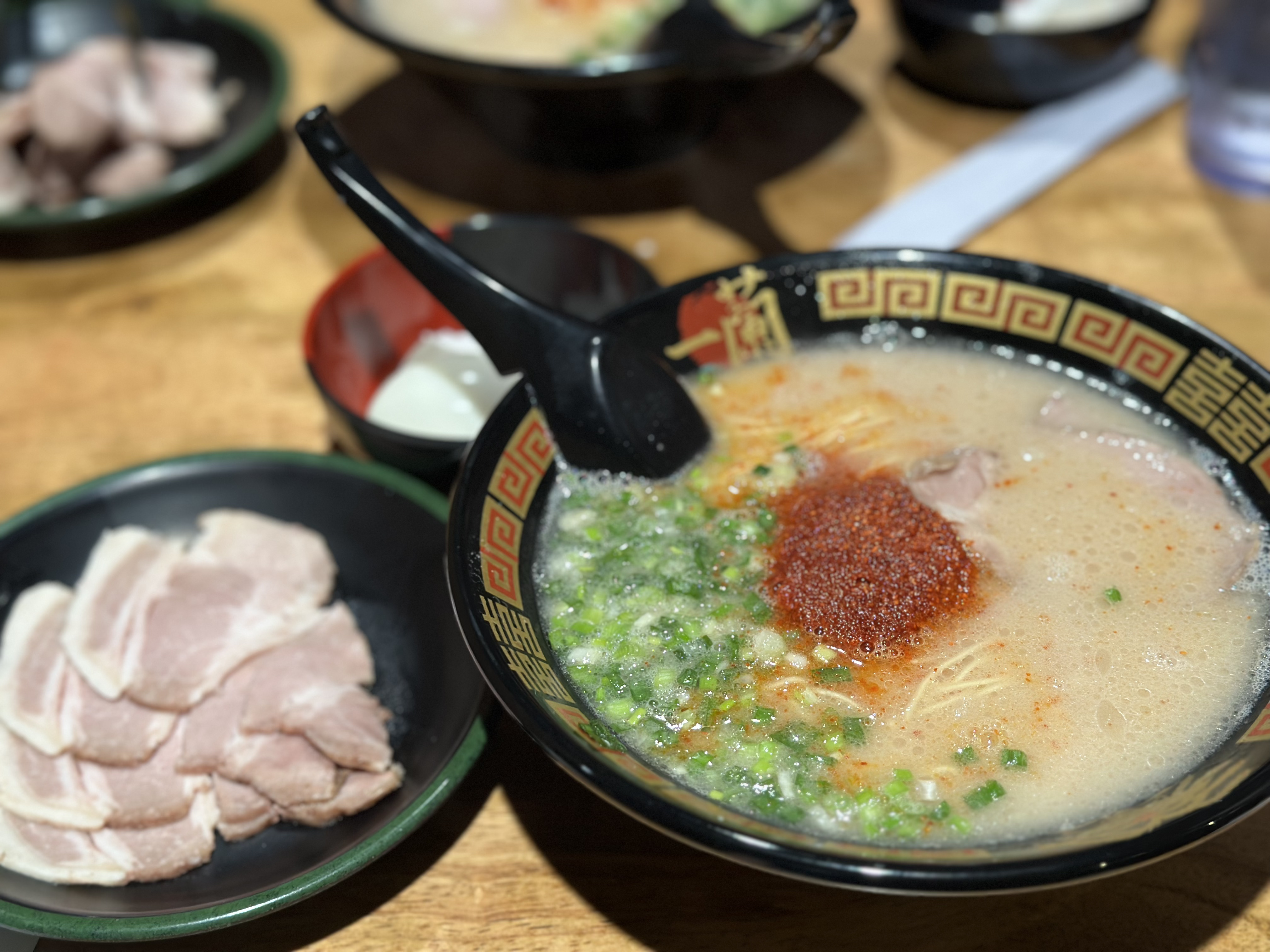 해장을 위해 택시를 타고 이치란라멘을 먹어줬다.