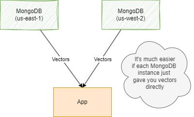 기본적으로 별도의 벡터 데이터베이스를 가지고 있으면 비용과 복잡성을 추가될 수 있다. MongoDB 상점에서 지역 간에 저장된 5억 개 이상의 문서가 있는 경우를 상상해봐라. 별도의 벡터 데이터베이스를 사용한다면 Pinecone과 같은 것이 두 데이터베이스 간에 수십억 개의 임베딩을 이동해야 할 수도 있으며 이는 많은 비용을 초래할 뿐만 아니라 사용자가 임베딩을 생성하는 것을 책임지게 된다.