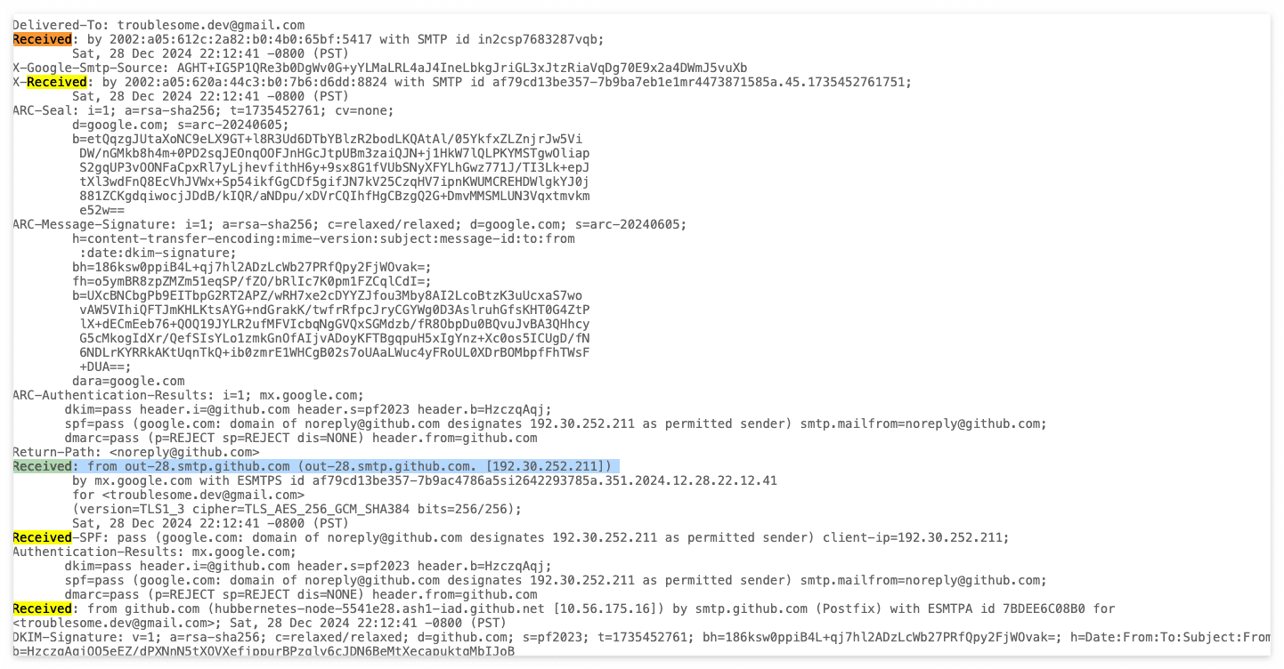 이건 생각보다 단순했다. Mail 을 발송하면 어느 서버에서 발송되었는지 정보를 확인할 수 있기 때문이다.